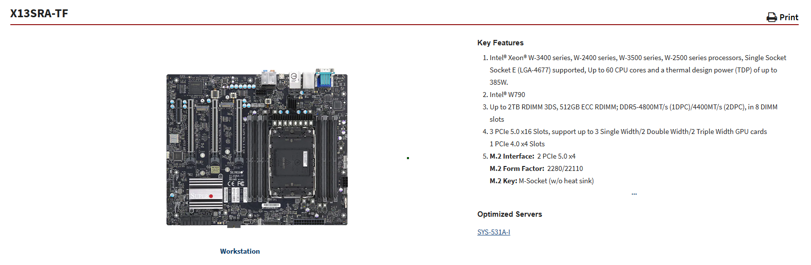 高頻服務器工作站主板工作站主板X13SRA-TF